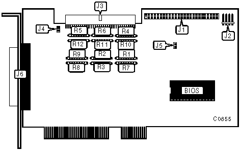 R1, R2, R9, R10, R11, R12 are 330-ohm. R3, R4, R5, R6, R7, R8 are 150-ohm. When using only the 68-pin external connector low & high bytes must be set to on. When using the 68-pin internal & external connectors or when using the 50-pin & 68-pin internal connectors low byte must be set to off, high byte to on. When using the 50-pin internal & 68-pin external low & high bytes must be set to off. |