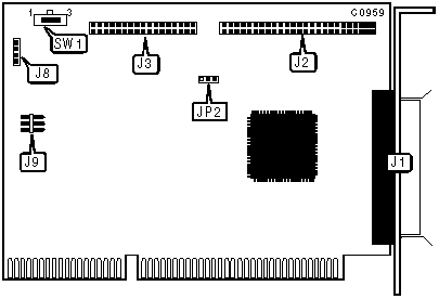 Note: SW1 is set to normal unless two ISApport boards are installed on the same system. In this situation, the boards are installed sequentially. First, board 1 is installed and configured. Then, its SW1 is set to lock, and board 2 is installed and configured with its SW1 set to normal. The reset setting for SW1 is not identified. | |||