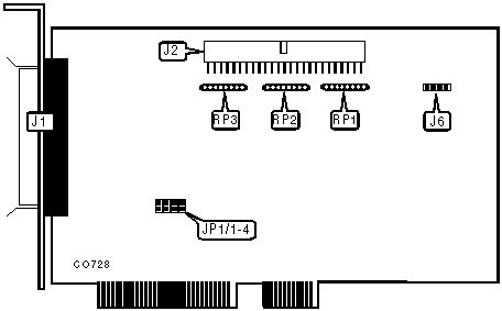 The terminator resistors (RP1, RP2, RP3) are to be removed only when the external and internal SCSI interfaces are used at the same time. |