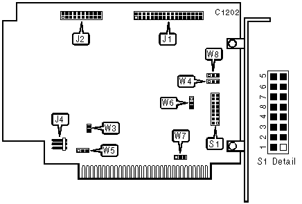 Note: This controller has a built-in low-level format program. To enter the program, run the DEBUG utility supplied with DOS and at the prompt enter: G=C800:5. Two additional jumpers may be present, W1 & W2, and are reserved for factory use and may not be changed. |