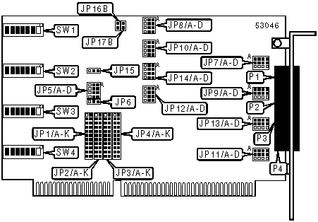 Note:JP1 sets the interrupt for port 1. The settings for JP2 through JP4 are identical and set the interrupts for ports 2 through 4, respectively. | |||||