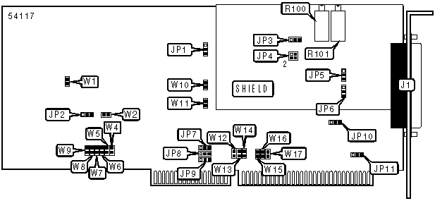 Note: A total of 256 base address settings are available. The jumpers are a binary representation of the decimal memory addresses. W9 is the Most Significant Bit and switch W4 is the Least Significant Bit. The switches have the following decimal values: W9=512, W8=256, W7=128, W6=64, W5=32, W4=16. Turn off the switches and add the values of the switches to obtain the correct memory address. (Close=1, Open=0) |