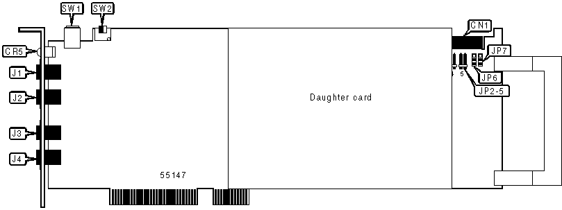 RJ-11 jacks (4), CTbus interface, 52-pin connector, 20-pin connectors (2) |