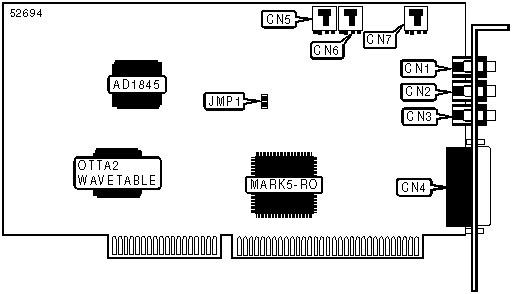 Audio line in, Audio line out, CD-ROM connectors (2), Microphone, MIDI/game port, TAD connector, TV tuner/IDE/Sony CD-ROM audio connector |