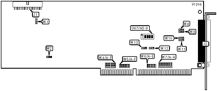 Note: A total of 255 base address settings are available. The switches are a binary representation of the decimal memory addresses. Switch A9 is the Most Significant Bit and switch A5 is the Least Significant Bit. The switches have the following decimal values: switch A9=512, A8=256, A7=128, A6=64, A5=32. Turn off the switches and add the values of the switches that are off to obtain the correct memory address. (Off=1, On=0) | ||||||