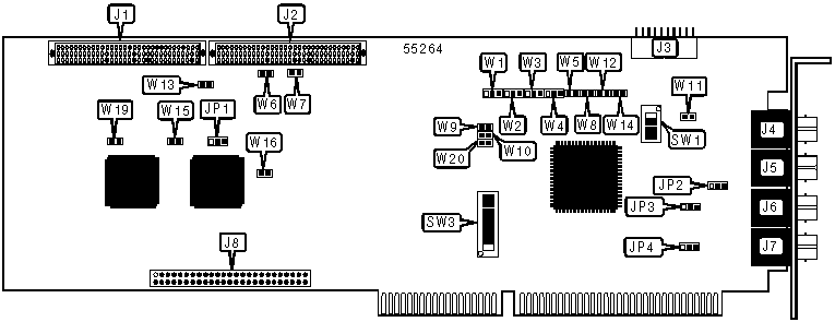 Note: A total of 255 base address settings are available. The switches are a binary representation of the decimal memory addresses. SW3/8 is the Most Significant Bit and switch SW3/1 is the Least Significant Bit. The switches have the following decimal values: SW3/8=512, SW3/7=256, SW3/6=128, SW3/5=64, SW3/4=32, SW3/3=16, SW3/2=8, SW3/1=4. Turn off the switches and add the values of the switches to obtain the correct memory address. (Off=1, On=0) | |||||||||