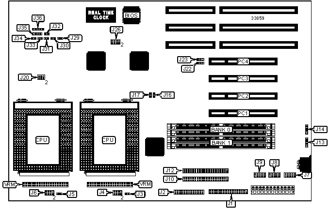 Note: Board accepts EDO memory. Board also accepts x 32 SIMMs. Banks are interchangeable. | ||