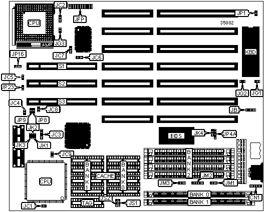 DRAM BANK AND JUMPER CONFIGURATION |