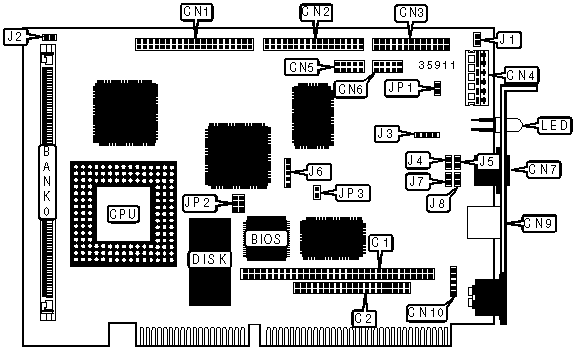 Note: Board accepts EDO memory. | |