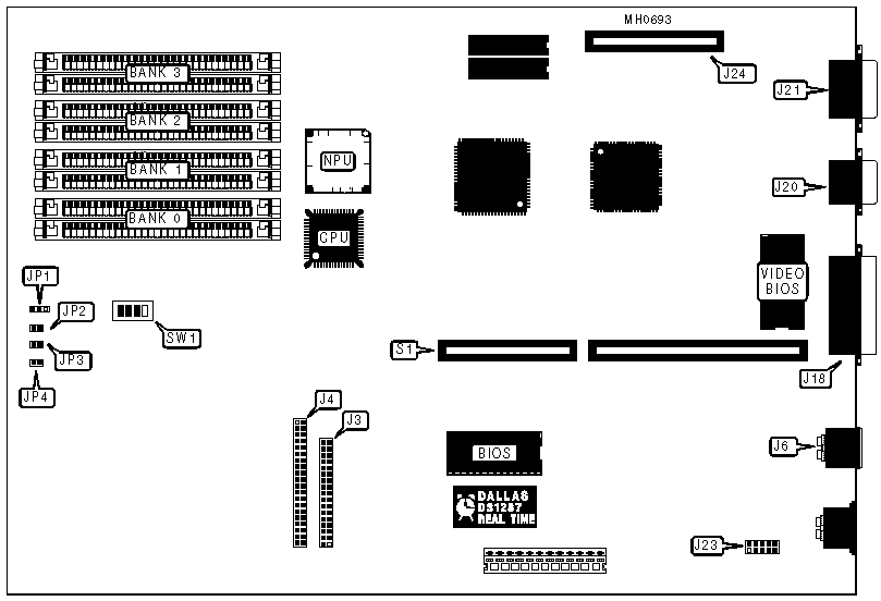Bus mouse port, floppy drive interface, IDE interface, serial port, parallel port, video port (TTL), VGA port, video feature port (8514) |