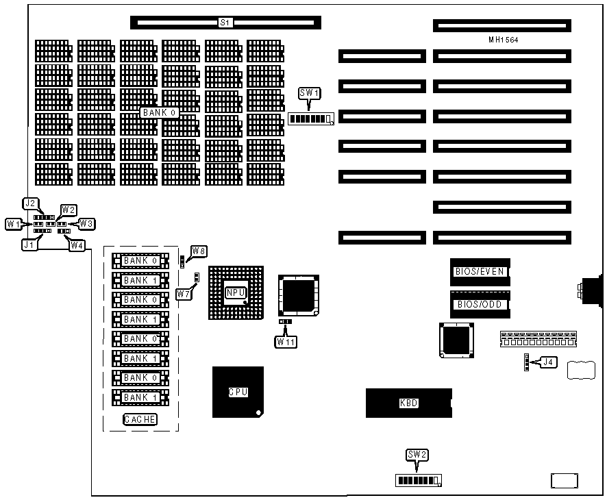 Note: JP1, JP2, JP3, Bank 1, Bank 2, and Bank 3 are located on the 32-bit external memory card. | ||||||