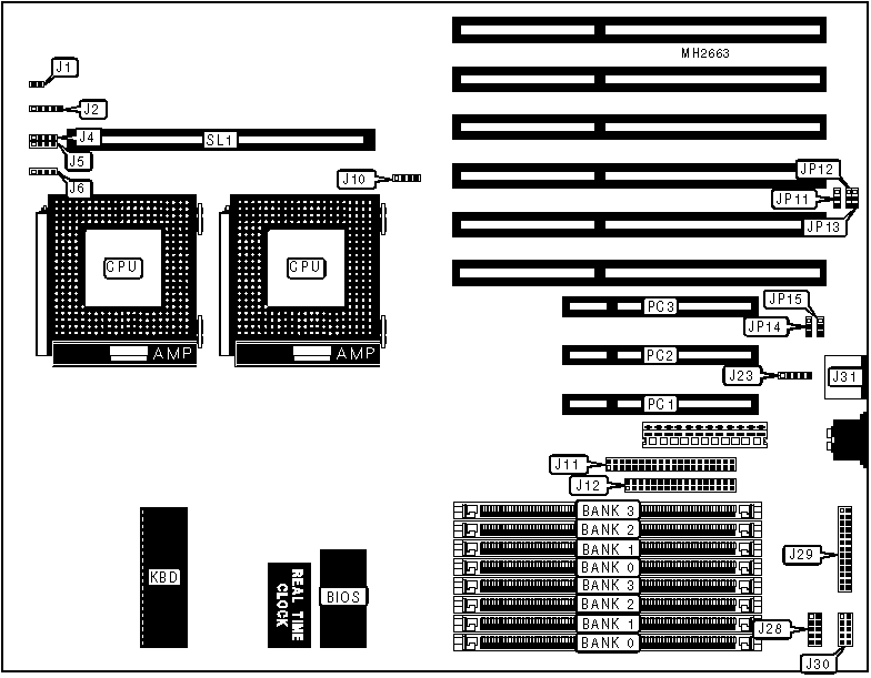 External cache card, 32-bit PCI slots (3), floppy drive interface, IDE interface, parallel port, PS/2 mouse port, PS/2 mouse interface, serial ports (2) |