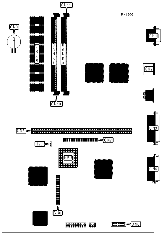 This board comes standard with 1M video memory using (8) 256K x 4 chips. |