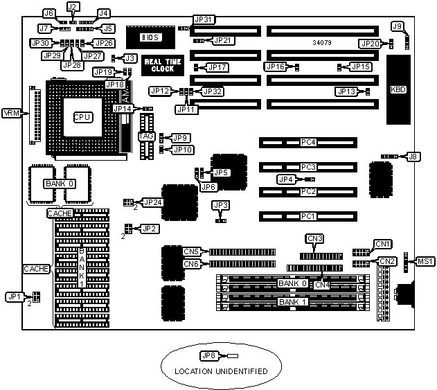 Note: Board accepts EDO memory. Board also accepts x 32 SIMMs. Banks are interchangeable. | ||