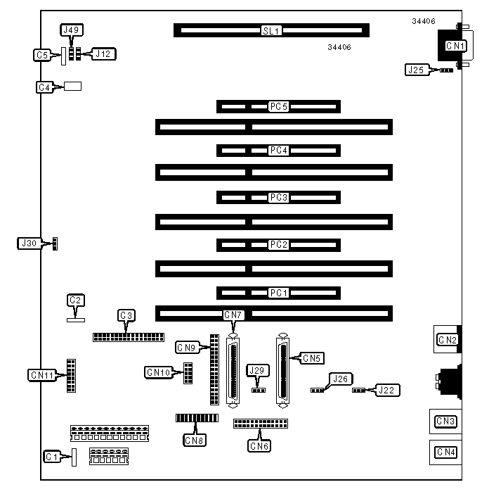 32-bit PCI slots (5), Ethernet connectors (2), floppy drive interface, Ultra SCSI interfaces (2), parallel port, PS/2 mouse port, serial port, VGA port, IR connector, VRM connectors (2), CPU slot |