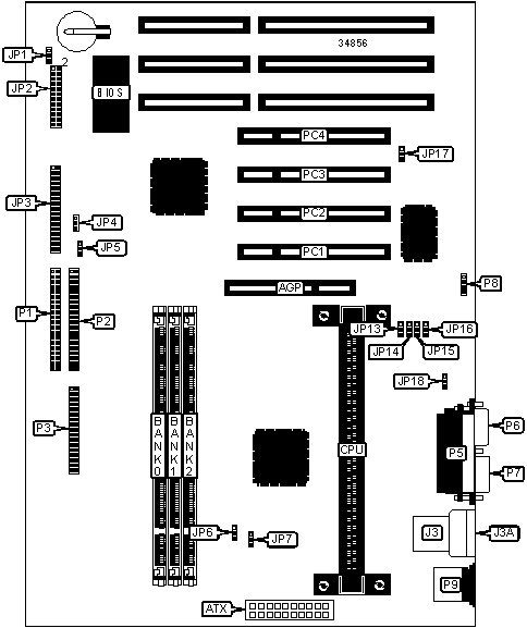 Note: Board accepts EDO & SDRAM memory. Maximum SDRAM is 384MB. Maximum EDO is 192MB. Does not support x 32 SDRAM in bank 2 or x 8 SDRAM in banks 0 & 1. | |||
