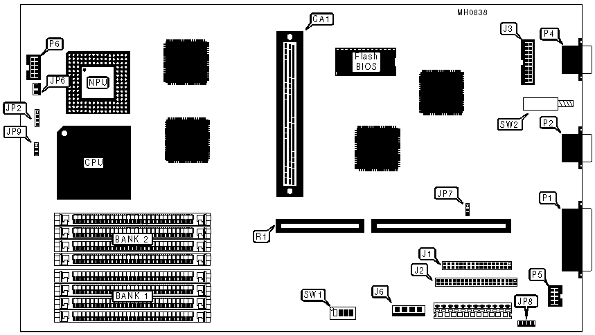 Note: The bus mouse port, headphone jack, and microphone jack are connected to the main board via the indicator panel assembly connector (P6). |