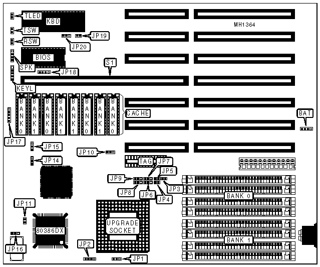 Note:The 32-bit local bus slot cannot be used if the CPU is a 386DX or a 486DX-50MHz. | |||