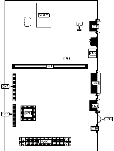 Note: Board accepts 512KB/1MB of video memory. The size of the chips are unidentified. The number of banks is unidentified. |