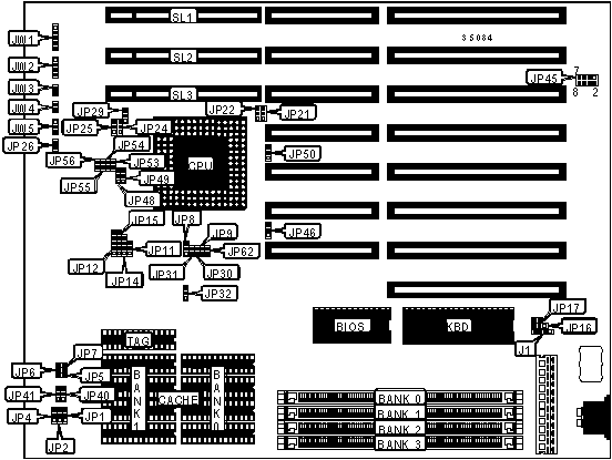 Note: Pins designated should be in the closed position. SL80486DX/DX2 is only available on the AH4T mainboard |