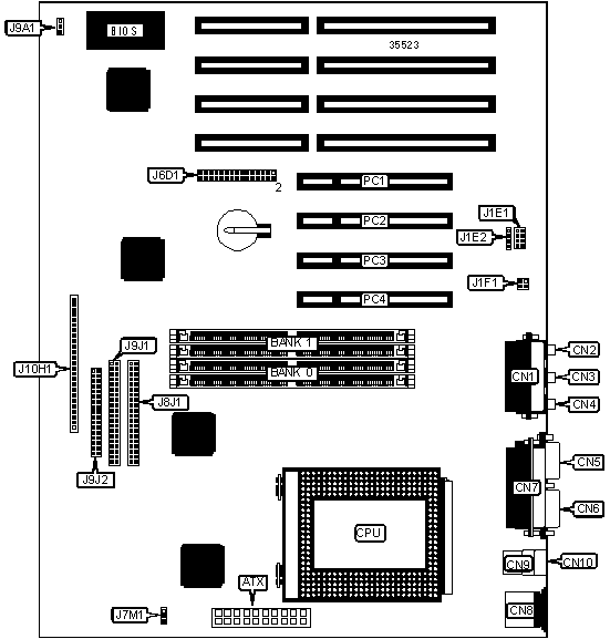 Note: Board accepts EDO memory. Board also accepts x 32 SIMMs. Banks are interchangeable. | ||
