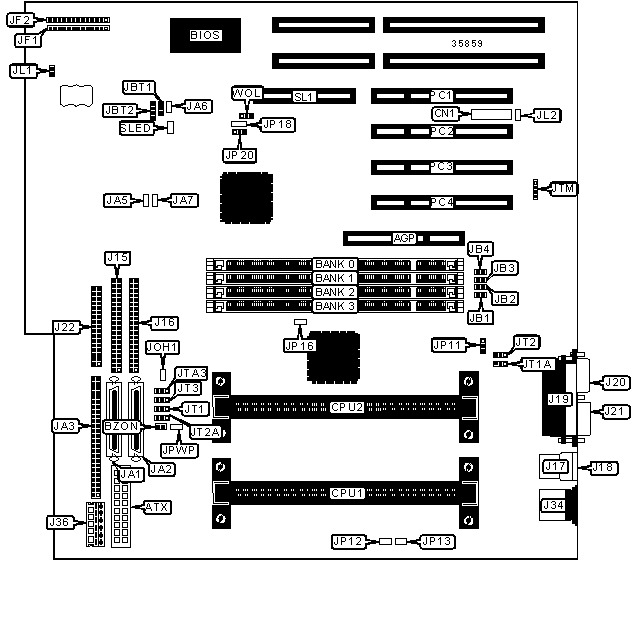 32-bit PCI slots (5), floppy drive interface, IDE interfaces (2), SCSI interface, Ultra SCSI interface, Ultra Wide SCSI interfaces (2), parallel port, PS/2 mouse port, serial ports (2), IR connector, USB connectors (2), ATX power connector, AGP slot, RAID slot, wake on LAN connector, SB-link connector |
