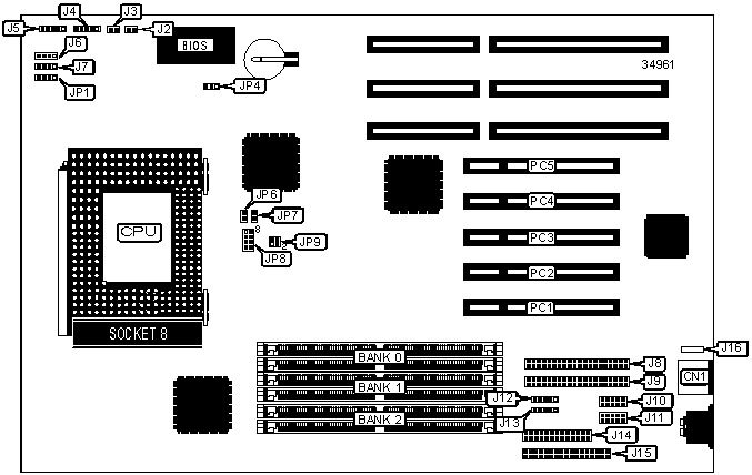 Note: Board accepts EDO memory. Board also accepts x 32 SIMMs. | |||