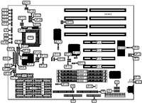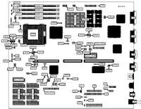 ![]() | DIAMOND FLOWER, INC. 486 G486VPB (Rev. 0+) 32-bit PCI slots (4), floppy drive interface, IDE interface (2), parallel port, serial ports (2), PS/2 mouse connector, green PC connector |