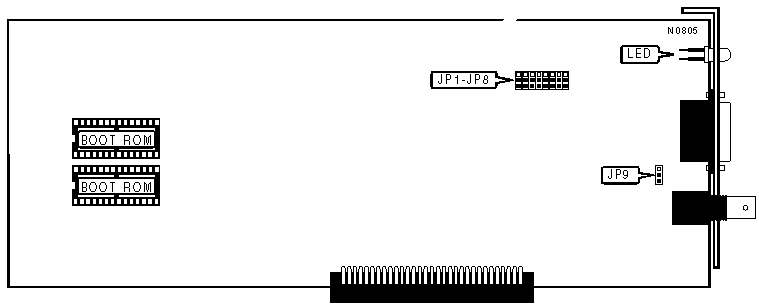 AUI transceiver via DB-15 port RG-58A/U 50ohm coaxial |