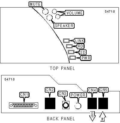 Voice, speakerphone, 25-pin serial port, power, RJ-45 connector, line in, line out |