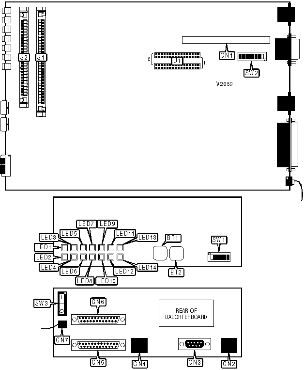 Note:When LED4 is on, press the lamp test button to reset it. Port 1 is the daughterboard. | |||