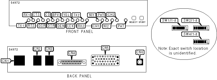 Power, network interface via RJ-48 connector, line in, line out V.35 DCE interface (34-pin connector), RS-232 or RS422/530 DCE interface (25-pin connector) |