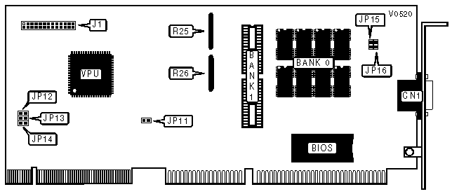 Note:If terminating resistors R25 and R26 are oriented horizontally, then the 512K x 8 VRAM chips are Bank 0. | |||