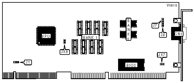Note: Some versions of the TGUI 9400CXI-VLB have (8) 256K x 4 DRAMs installed with no provision for memory upgrade. |